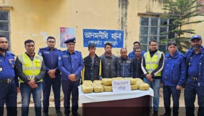 বগুড়ার আদমদীঘিতে পুলিশের বিশেষ অভিযানে ৩১ কেজি গাঁজাসহ চার মাদক কারবারিকে গ্রেপ্তার করা হয়েছে। বৃহস্পতিবার (৩০ জানুয়ারি ২০২৫) দুপুরে মাদকদ্রব্য নিয়ন্ত্রণ আইনে তাদের বিরুদ্ধে মামলা দায়ের করা হয়েছে।