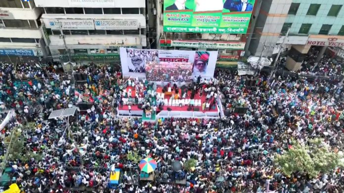 কথা ডেক্স:‘আগামী ডিসেম্বরের মধ্যেই জাতীয় নির্বাচন অনুষ্ঠিত হতে হবে’ বলে দৃঢ়তার সঙ্গে বলেছেন বিএনপির ভারপ্রাপ্ত চেয়ারম্যান তারেক রহমান। আর ডিসেম্বরের মধ্যেই যাতে নির্বাচন অনুষ্ঠিত হয়, তার প্রস্তুতি নিতে তিনি নতুন প্রজন্মসহ দেশবাসীর প্রতি আহ্বান জানিয়েছেন। বুধবার রাজধানীর নয়াপল্টনে এক জনাকীর্ণ সমাবেশে অন্তর্বর্তী সরকারের কাছে দ্রুত নির্বাচন আয়োজনের দাবি জানিয়ে তারেক রহমান কথা বলেন।‘তারুণ্যের রাজনৈতিক অধিকার প্রতিষ্ঠার সমাবেশ’ শীর্ষক এই সমাবেশে প্রধান অতিথির বক্তব্য দেন বিএনপির ভারপ্রাপ্ত চেয়ারম্যান তারেক রহমান। তিনি লন্ডন থেকে সমাবেশে ভার্চ্যুয়ালি যুক্ত হন। সমাবেশে তারেক রহমান বলেন, ‘আগামী ডিসেম্বরের মধ্যেই জাতীয় নির্বাচন অনুষ্ঠিত হতে হবেই। আবারও আমরা বলতে চাই, আগামী ডিসেম্বরের মধ্যে জাতীয় নির্বাচন অনুষ্ঠিত হবে।’ নতুন প্রজন্মসহ দেশবাসীর উদ্দেশে তিনি বলেন, ‘আগামী ডিসেম্বরের মধ্যে জাতীয় নির্বাচন যাতে অনুষ্ঠিত হয়, তার প্রস্তুতি নিতে শুরু করুন। কারা রাষ্ট্র পরিচালনা করবে, কারা আপনাদের প্রতিনিধি হবে, জাতীয় নির্বাচনে আপনারা ভোট দিয়ে আপনাদের সেই প্রতিনিধিকে নির্বাচিত করবেন।’ তারুণ্যের এই সমাবেশ ঘিরে ঢাকায় লাখো মানুষের জমায়েত হয়। এই কর্মসূচিকে কেন্দ্র করে যানজট ও জনদুর্ভোগে রাজধানী ঢাকার বড় একটি অংশ রীতিমতো অচল হয়ে পড়ে। বিএনপির তিন সংগঠন জাতীয়তাবাদী ছাত্রদল, যুবদল ও স্বেচ্ছাসেবক দলের উদ্যোগে এই সমাবেশ হয়।বেলা দুইটায় সমাবেশ শুরুর কথা থাকলেও ১১টা থেকেই নয়াপল্টনে বিএনপির কেন্দ্রীয় কার্যালয়ের সামনে নেতা–কর্মীরা খণ্ড খণ্ড মিছিল নিয়ে জমায়েত হতে থাকেন। ছাত্রদল, যুবদল ও স্বেচ্ছাসেবক দলের নেতা-কর্মীরা সবুজ, হলুদ ও লাল রঙের ক্যাপ ও টি-শার্ট পরে সমাবেশে যোগ দেন। এ সময় নেতা-কর্মীদের হাতে শোভা পাচ্ছিল বিএনপির দলীয় পতাকা এবং দলের ভারপ্রাপ্ত চেয়ারম্যান তারেক রহমানের ছবিসংবলিত প্ল্যাকার্ড।সমাবেশ শুরু হয় বেলা দুইটার কিছু আগে। তখন কানায় কানায় পূর্ণ হয়ে ওঠে নয়াপল্টন ও আশপাশের এলাকা। এ সময় ওই এলাকায় যান চলাচল বন্ধ হয়ে যায়। একপর্যায়ে কাকরাইল, দৈনিক বাংলা, রাজারবাগ পুলিশ হাসপাতাল, পল্টন এবং নটর ডেম কলেজসংলগ্ন সড়কেও নেতা-কর্মীরা ছড়িয়ে পড়েন। সাংস্কৃতিক অনুষ্ঠানের মধ্য দিয়ে সমাবেশ শুরু হয়। পরে বক্তব্য দেন নেতারা।