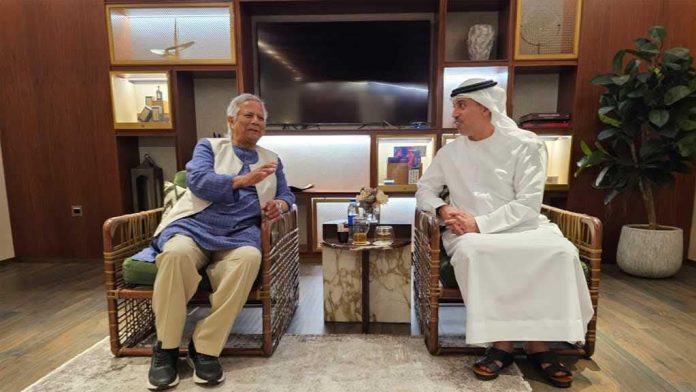 সংযুক্ত আরব আমিরাতের ক্রীড়ামন্ত্রী আহমদ বেলহুল আল ফালাসি দুবাই পৌঁছালে প্রধান উপদেষ্টাকে স্বাগত জানান। দেশটির ক্রীড়ামন্ত্রী প্রধান উপদেষ্টাকে সামিটে অংশ নেওয়ায় ধন্যবাদ দেন।তিনি দুবাইয়ে গত এক দশক ধরে আয়োজিত আন্তর্জাতিক এ সম্মেলন সম্পর্কে অবহিত করেন। এসময় তারা দুই দেশের মধ্যে খেলা-ধুলা ও সংস্কৃতির ক্ষেত্রে সম্ভাব্য সহযোগিতাসহ পারস্পরিক স্বার্থসংশ্লিষ্ট নানা বিষয়ে আলোচনা করেন।